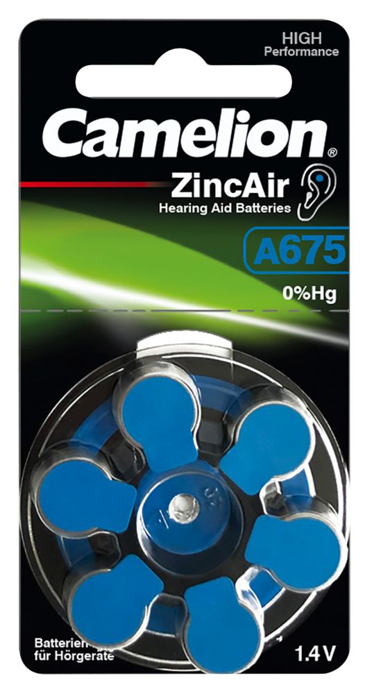 Knopfzelle CAMELION, A675, Zink-Luft, 6er-Blister