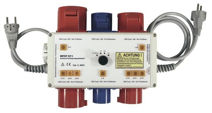 - Zum Überprüfen von ortsveränderlichen Geräten und Verlängerungsleitungen mit den Steckern und
