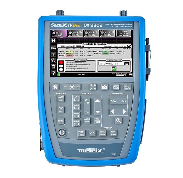 • Modernes, tragbares Oszilloskop mit 2 isolierten Kanälen mit 300 MHz Bandbreite für die Prüfung der physikalischen Integrität von Feldbussen
