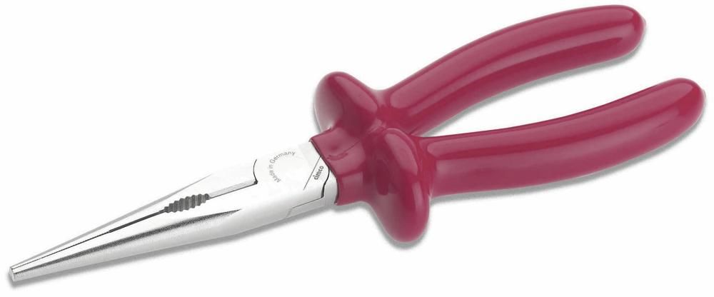 mit eingelegtem Gelenk, geraden, ovalspitzen Backen und Seitenschneider, VDE isoliert.