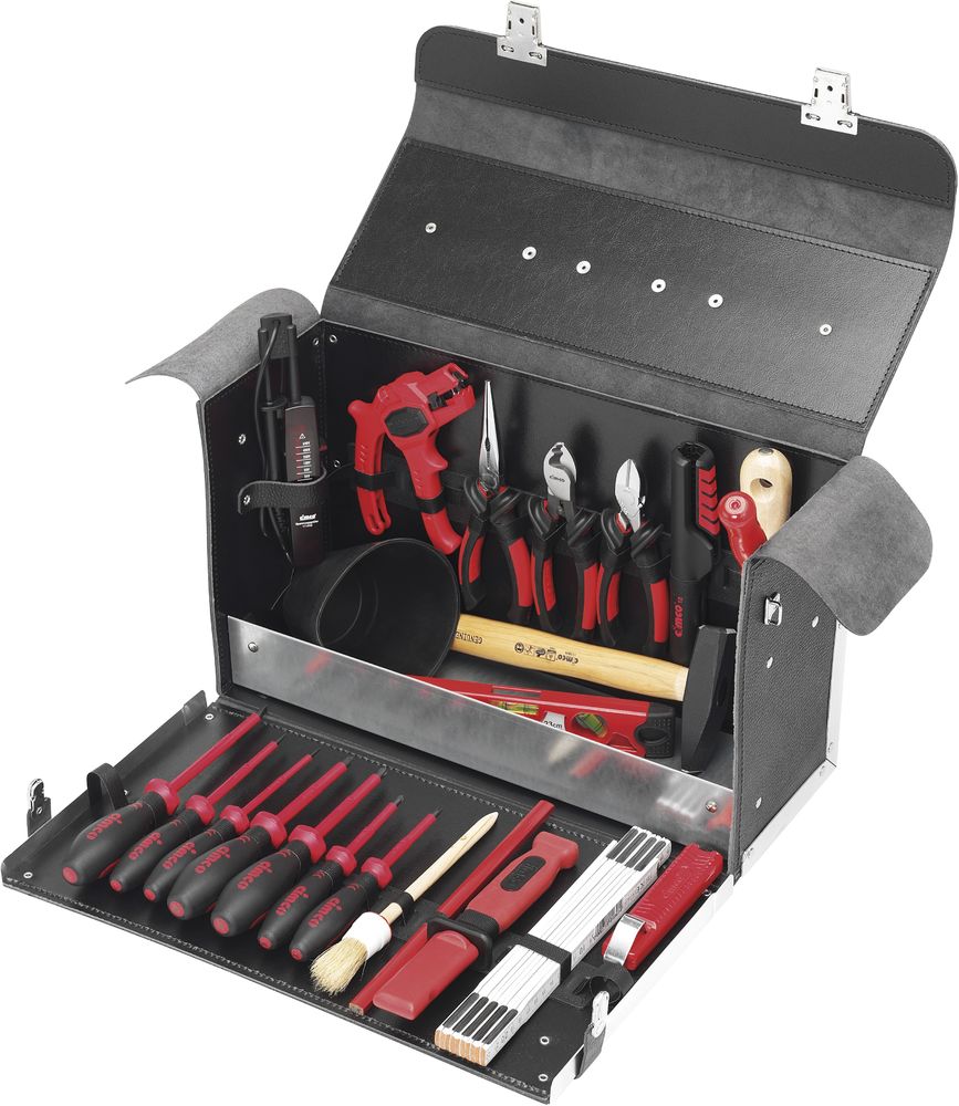 und Dokumenten-Vortasche komplett mit 23 Elektriker-Werkzeugen