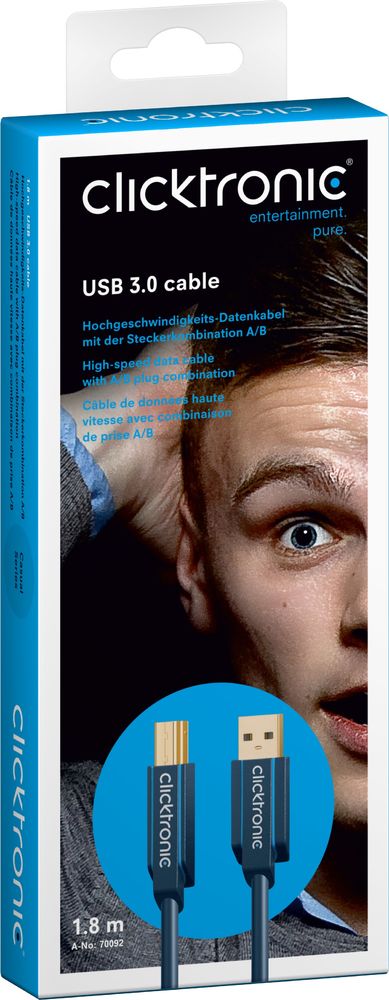 Der Artikel Clicktronic 70092 USB 3.0 Kabel - Hochgeschwindigkeits-Datenkabel mit der Steckerkombination A/B ist derzeit auf Lager