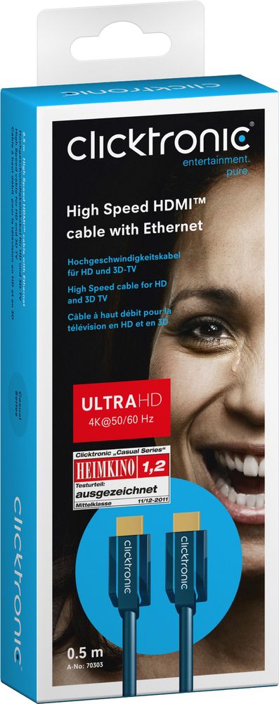 Clicktronic 70303 High Speed HDMI™ Kabel mit Ethernet - Hochgeschwindigkeitskabel für HD- und 3D-TV