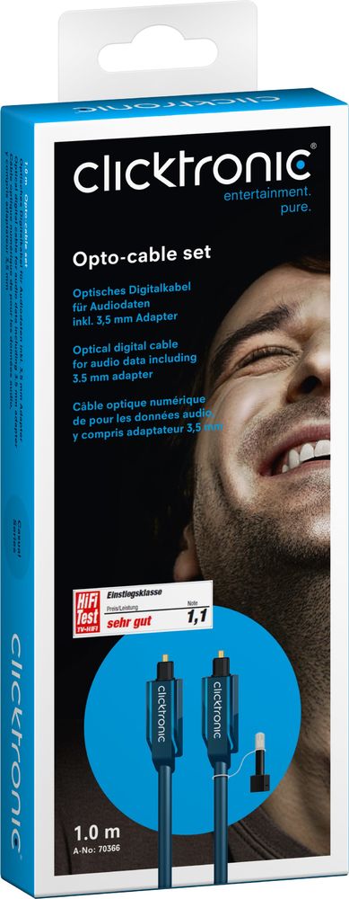 Der Artikel Clicktronic 70366 Opto-Kabel-Set - optisches Digitalkabel für Audiodaten inklusive 3,5 mm Adapter ist derzeit auf Lager