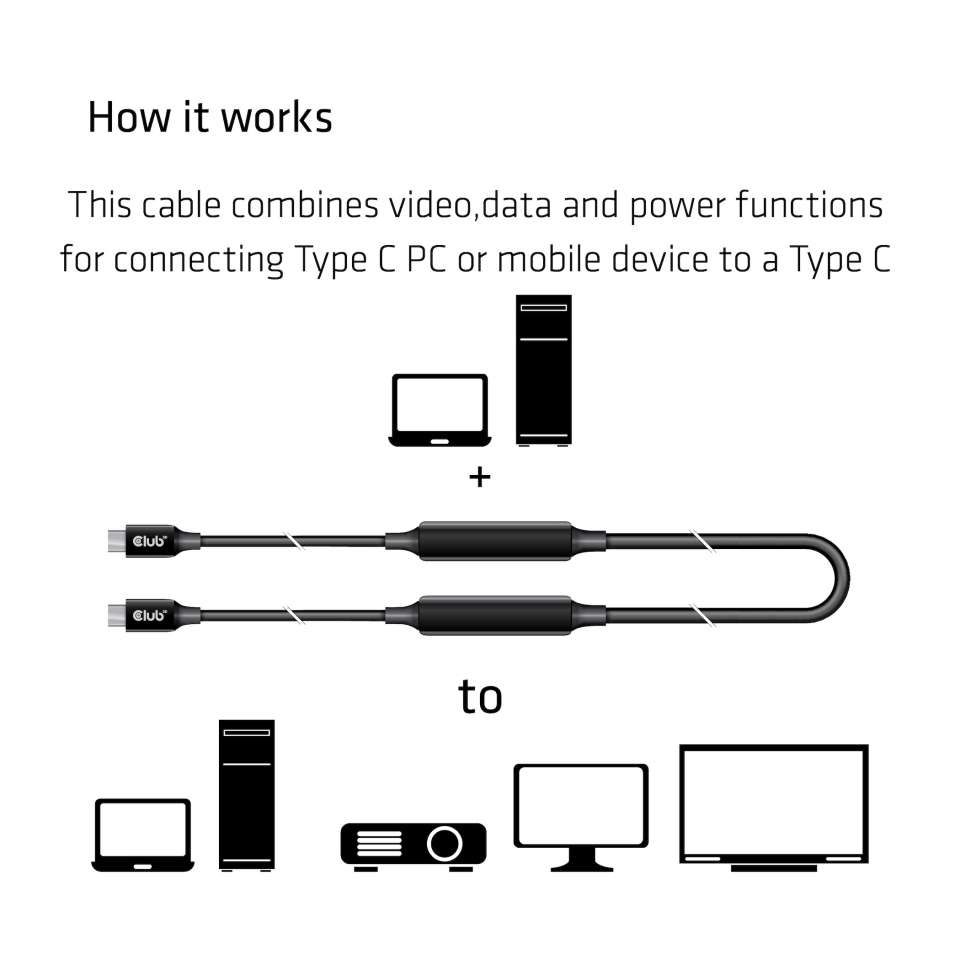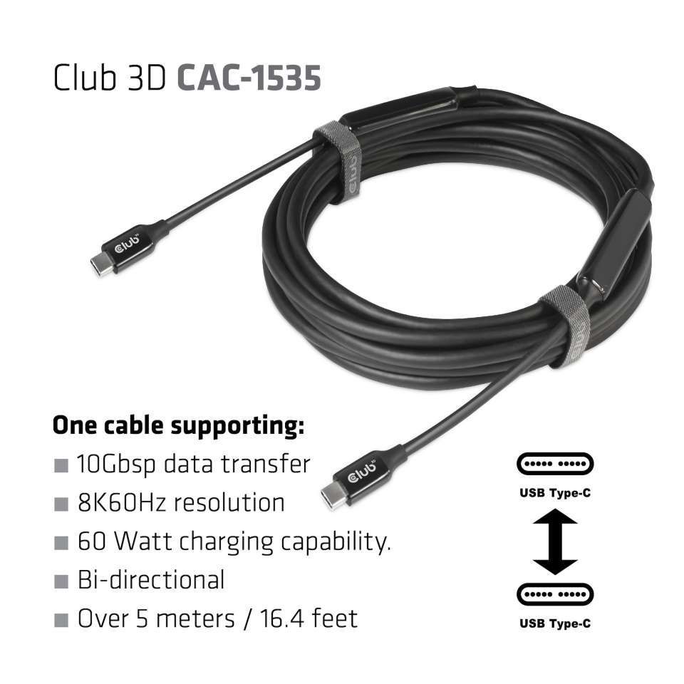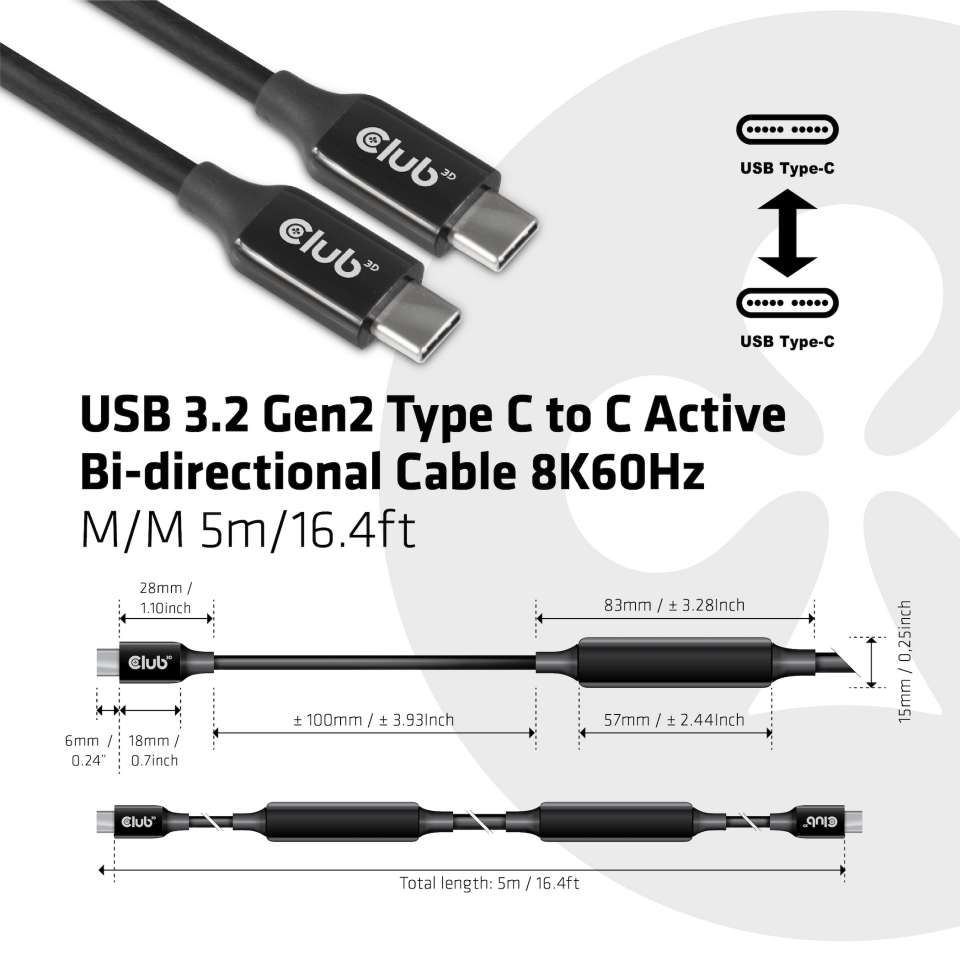 Kabel USB 3.2 C (St) => C (St) 5,0m *Club 3D* Aktiv bidirektional 8K60Hz