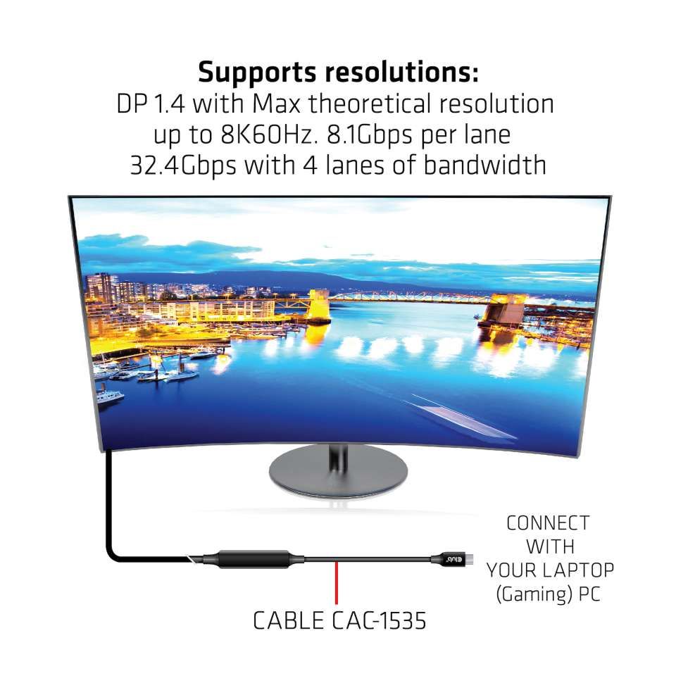 Der Artikel Kabel USB 3.2 C (St) => C (St) 5,0m *Club 3D* Aktiv bidirektional 8K60Hz ist derzeit auf Lager