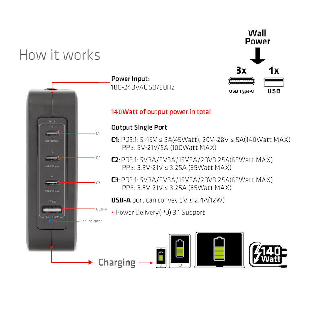 Club 3D Reise-Netzteil USB Typ C 1-fach 140W