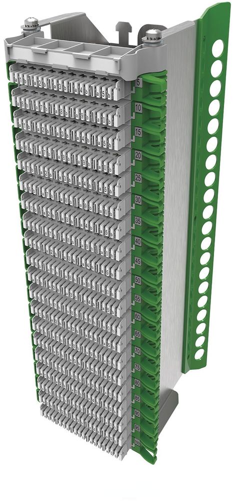 Bestückt mit 20 LSA-HD®-P-RS 71/17 Trennleisten zu 5 DA für Profil-Rundstangen mit