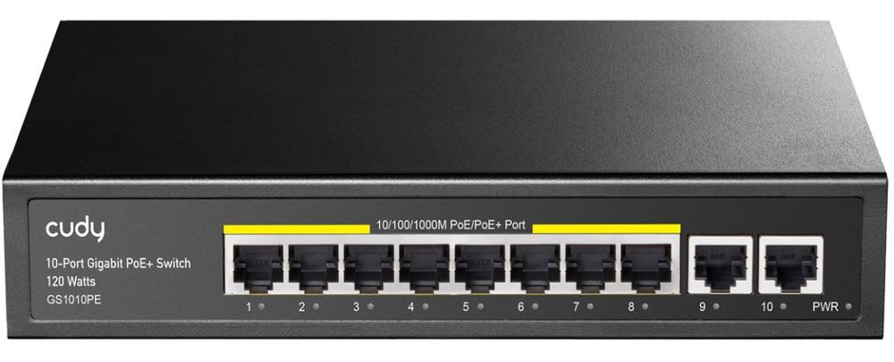 Cudy 8-Port Gigabit PoE+ Switch with 2 Gigabit Uplink Ports 120W, GS1010PE