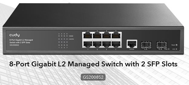 Cudy 8-Port Layer 2 Managed Gigabit Switch with 2 Gigabit SFP Slots, GS2008S2