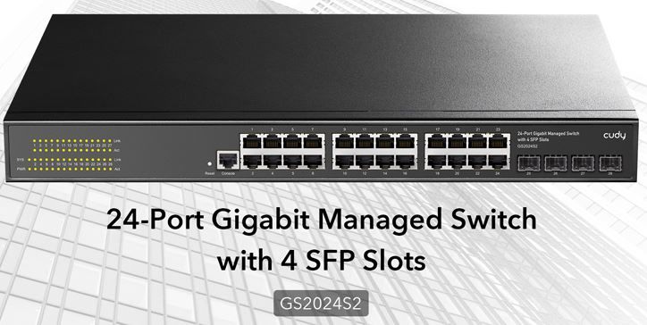 Cudy 24-Port Layer 2 Managed Gigabit Switch with 4 Gigabit SFP Slots, GS2024S2