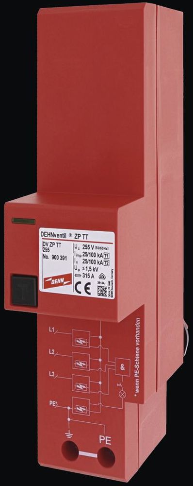 Dehn + Soehne 900391 Dehn DVZPTT255 Kombiableiter Typ1 DEHNventil ZP für 3ph TT und TN-S-Systeme