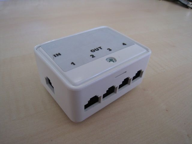 für Up0 oder analog ! Eingang: 1x RJ45 8P8C auf 4x Ausgang 8P4C (2 Adern belegt: 4,5) zum Anschluss von 4 analogen oder Up0-Telefonen an einer 8-adrig beschalteten RJ45-Dose.