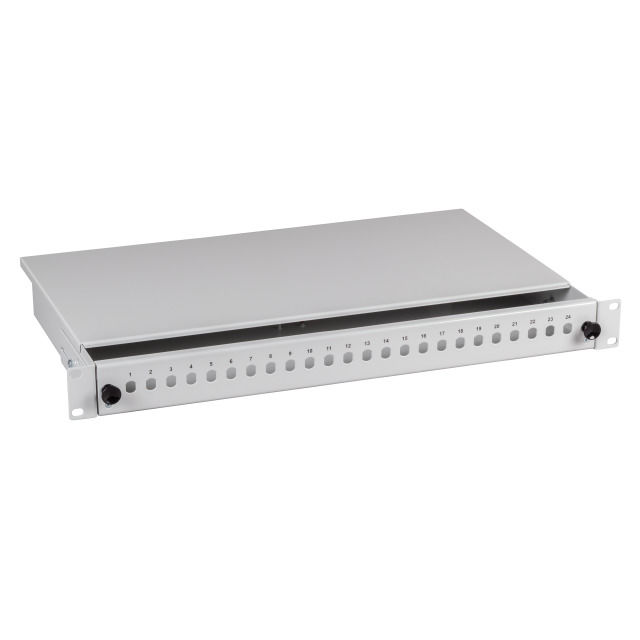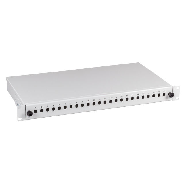 LWL-Patchpanel für 24xLC/LSH(E2000)-Duplex-Buchsen, 48,3 cm ( 19 Zoll )/1HE, ohne Kupplungen, Lichtgrau, Synergy 21,
