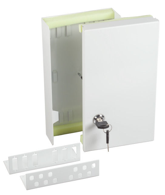 LWL-Wandverteiler Mini, mit Zubehör, B150/H265/T55mm, ohne Kupplungen, Weiss,