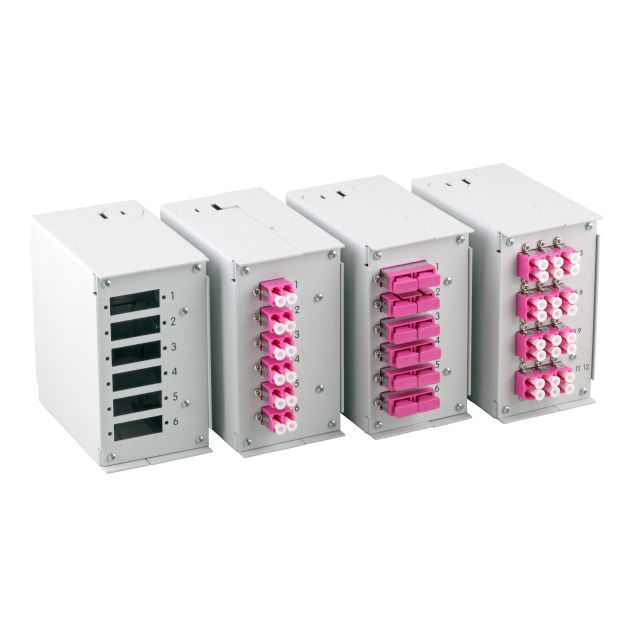 LWL-Patchpanel für Hutschiene(DIN), 12xLC-Duplex/SC-Simplex-Buchsen, ohne Kupplungen, Lichtgrau, Synergy 21,