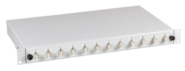 LWL-Patchpanel für 24xLC/LSH(E2000)-Duplex-Buchsen, 48,3 cm ( 19 Zoll )/1HE, ohne Kupplungen, Lichtgrau, Synergy 21,
