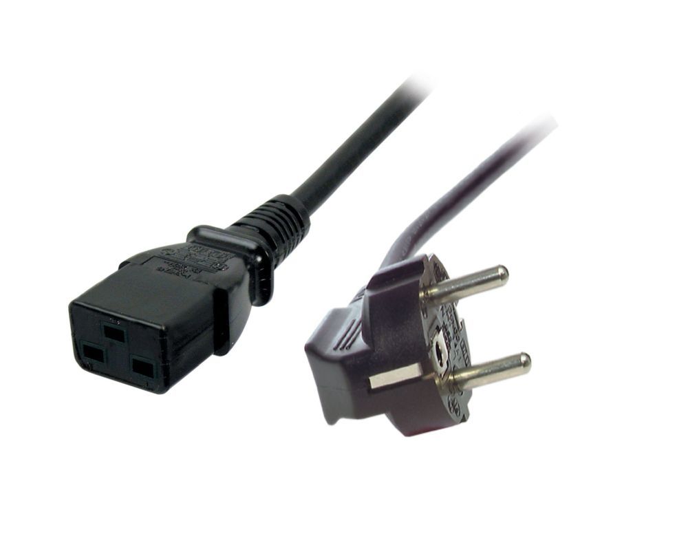 Der Artikel Netzkabel 230V Schutzkontakt CEE7(Stecker_90Grad)->Kaltgeräte IEC-C19(Buchse), 1,8m, 16A, ist derzeit auf Lager