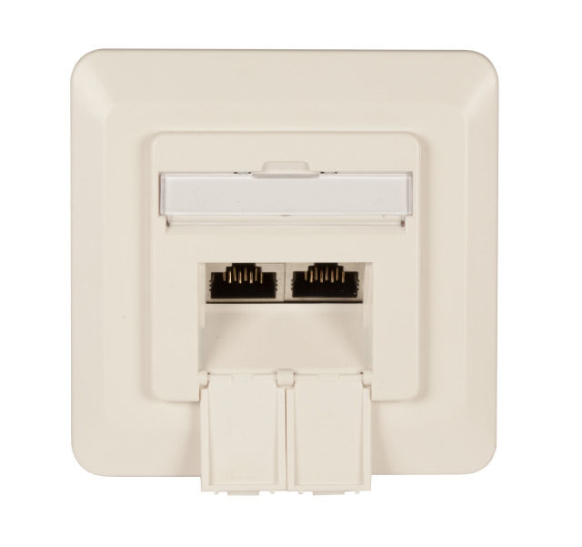 Dosen TP,UP, 2-fach, CAT6, 250Mhz, Reinweiss, Kabeleingang oben/unten,