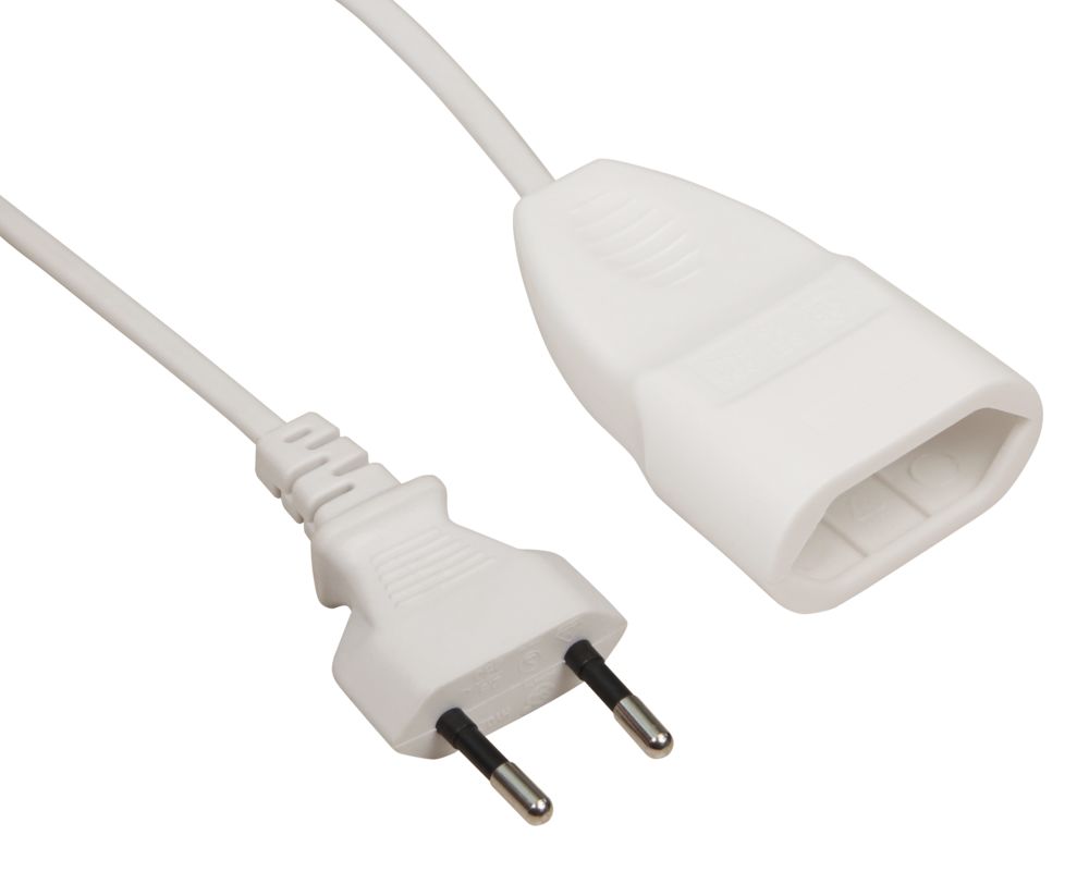 Netzkabel-Verlängerung McPower, 2m, Euro-Stecker - Euro-Kupplung, weiß