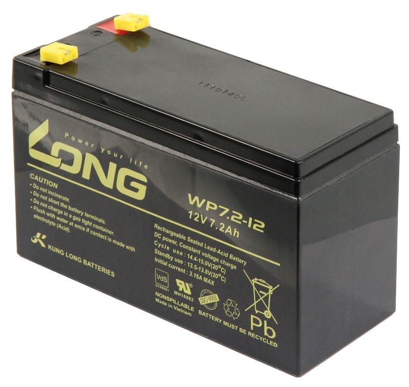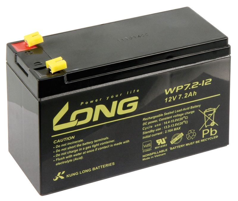 Bleiakku KUNG LONG ''WP7,2-30,5 cm ( 12 Zoll ) 12V/7,2Ah, VdS, 151x65x102mm, 2,67kg