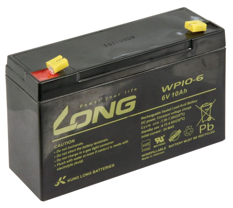 Bleiakku KUNG LONG ''WP10-15,2 cm ( 6 Zoll ) 6V/10Ah, 151x50x100mm, 1,99kg