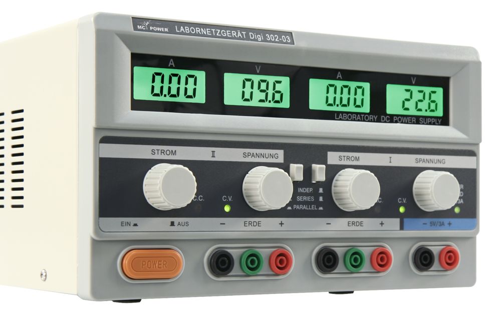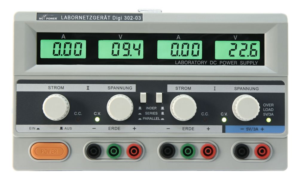 Labornetzgerät McPower ''Digi 302-7,6 cm ( 3 Zoll ), 2x 0-30V, 0-3A, 1x 5V/3A