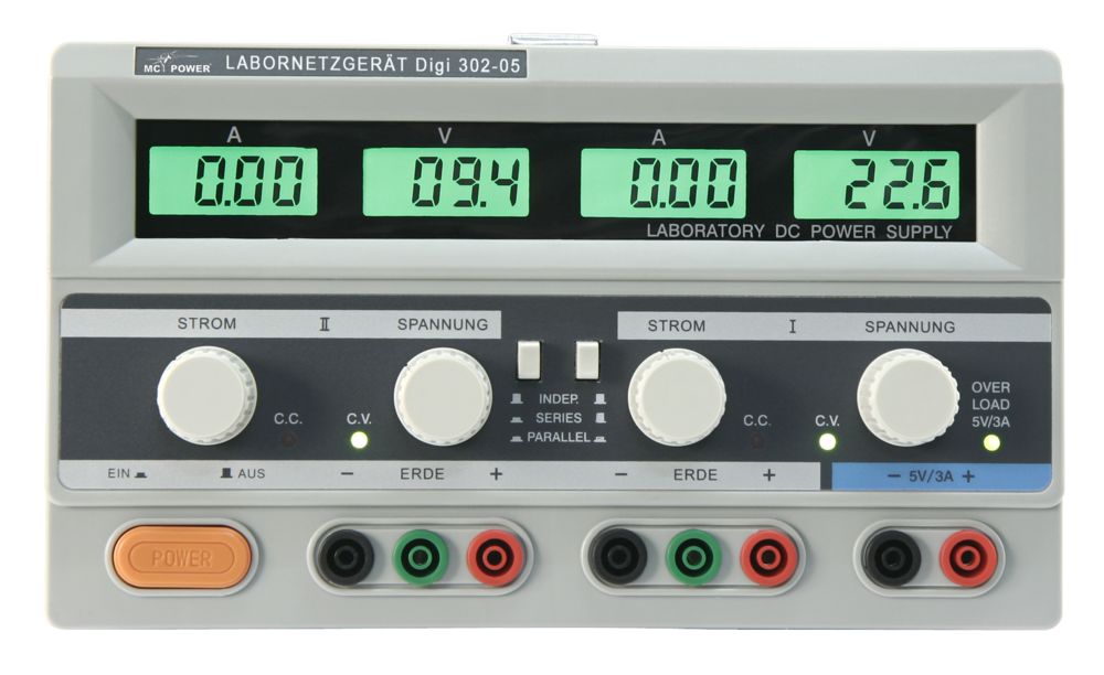 Labornetzgerät McPower ''Digi 302-12,7 cm ( 5 Zoll ), 2x 0-30V, 0-5A, 1x 5V/3A