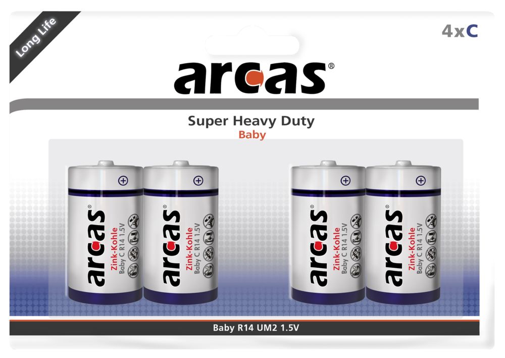 Baby-Batterie Super Heavy Duty 1,5V, Typ C/R14, 4er-Pack