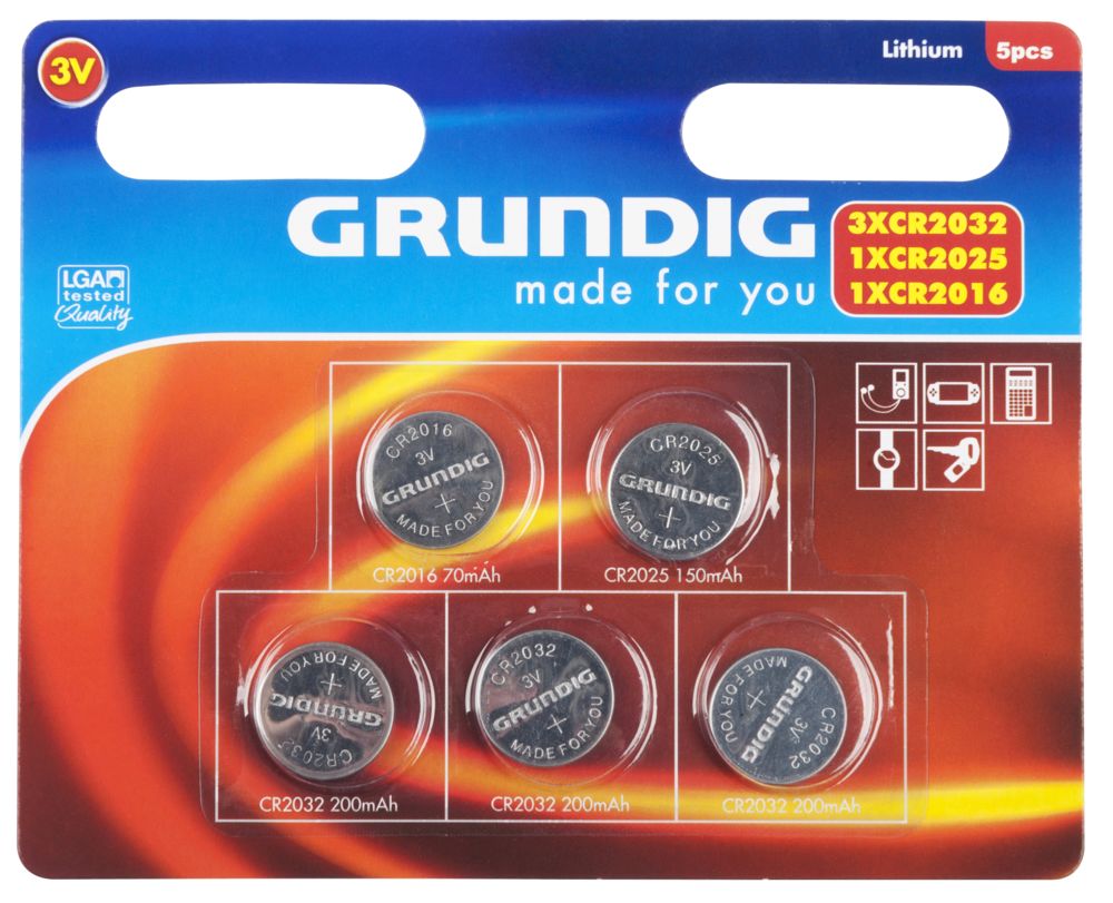 Knopfzellen-Sortiment GRUNDIG, 3.0V, Lithium, 5-teilig
