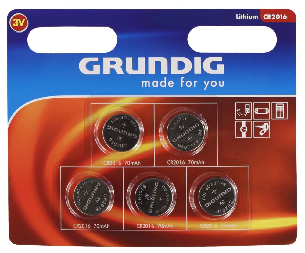 Knopfzelle GRUNDIG CR2016, 3,0V, Lithium, 5er-Blister