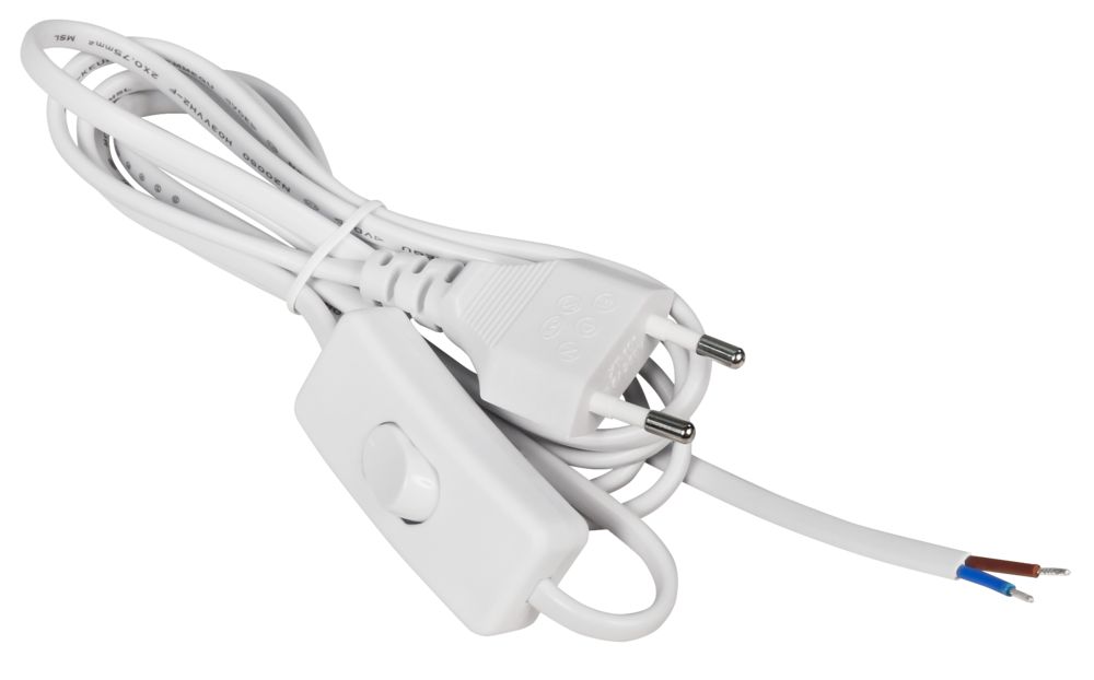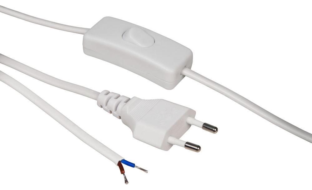 Der Artikel Euro-Netzkabel McPower mit Schnurschalter und blanken Enden, 2m, weiß ist derzeit auf Lager