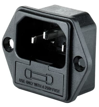 Der Artikel Kaltgeräte-Einbaustecker mit Sicherungshalter, Lötanschluss ist derzeit auf Lager