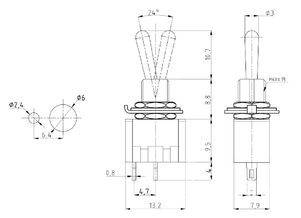 Der Artikel Miniatur-Kippschalter McPower, 250V/3A, 6-polig, 2 Stellungen: EIN / EIN ist derzeit auf Lager