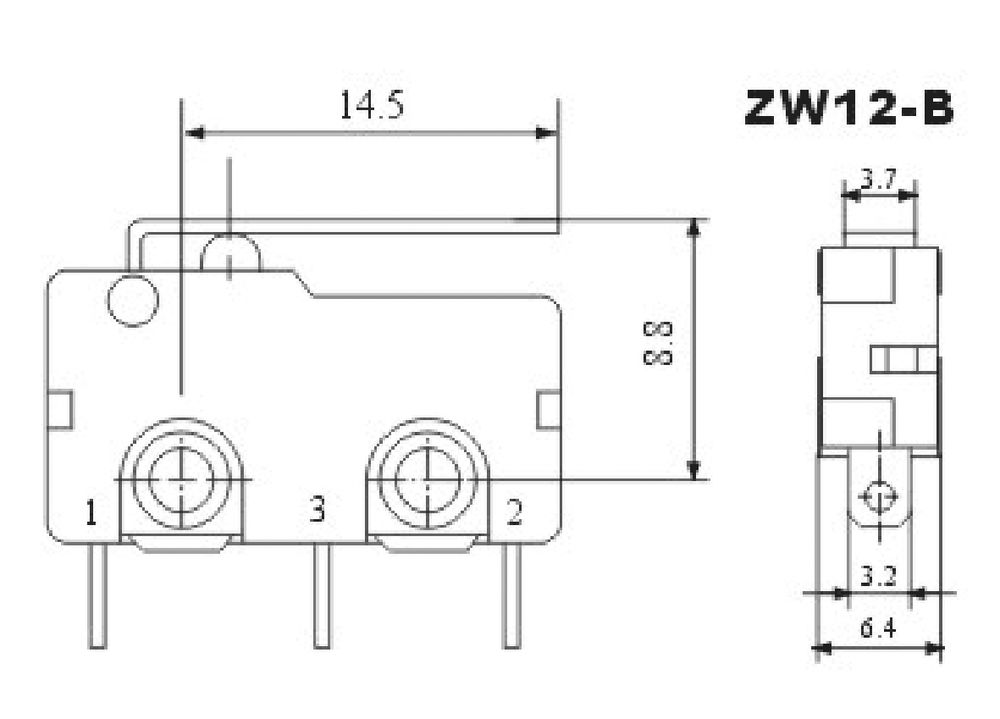 Microschalter McPower, 250V/5A, 3-polig, gefedert, Taster: EIN/EIN