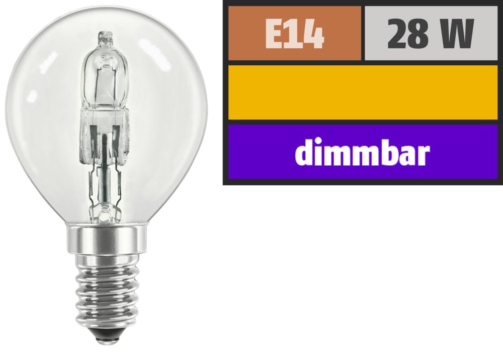 Halogen-ECO-Tropfenlampe PHILOS, P45, E14, 230V, 28W, klar, dimmbar