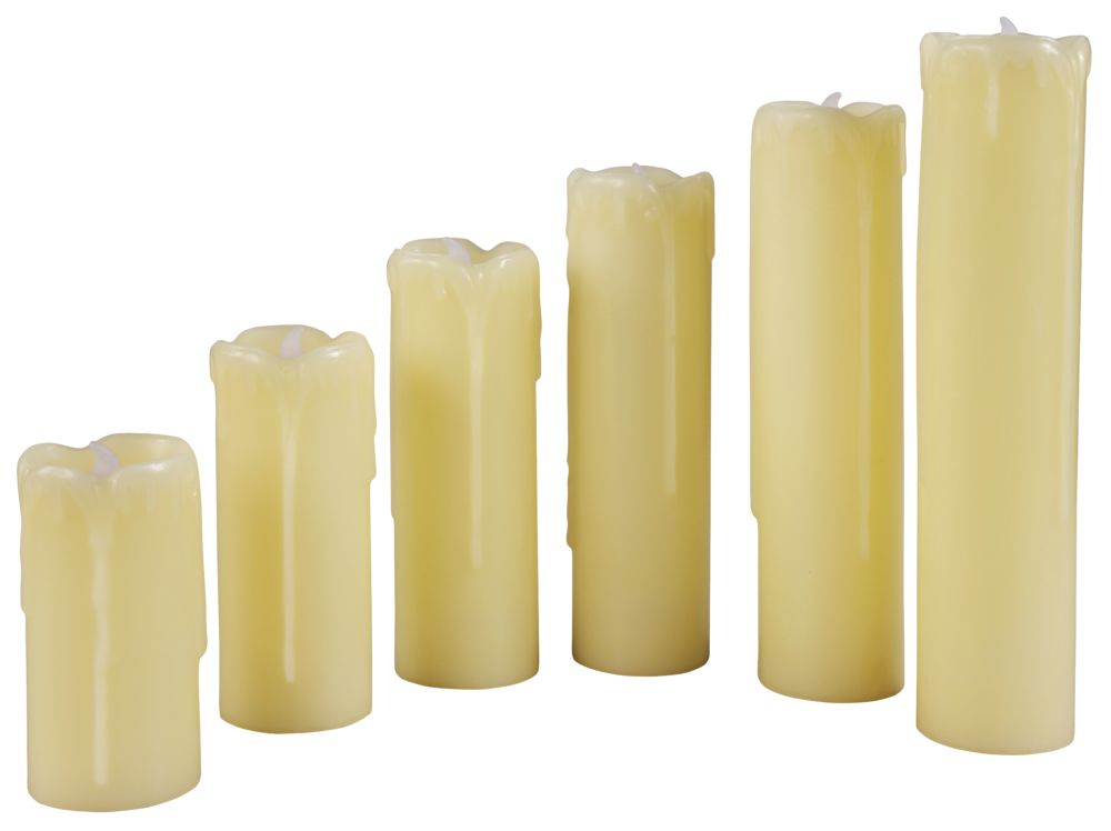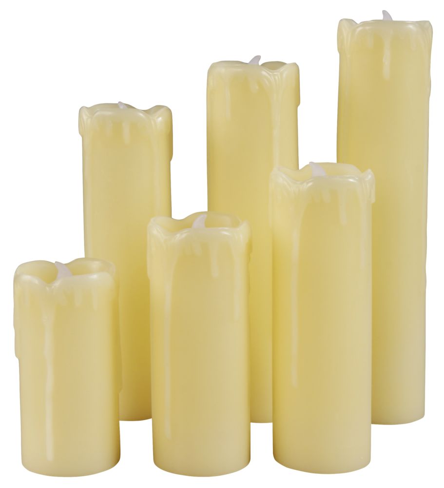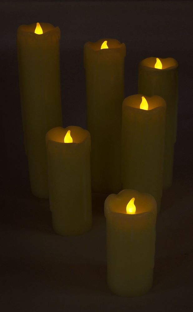 LED Echtwachs-Kerzen, 6er-Pack, 5cm-Ø, Höhe 22,5, 20, 17,5, 15, 12,5, 10cm