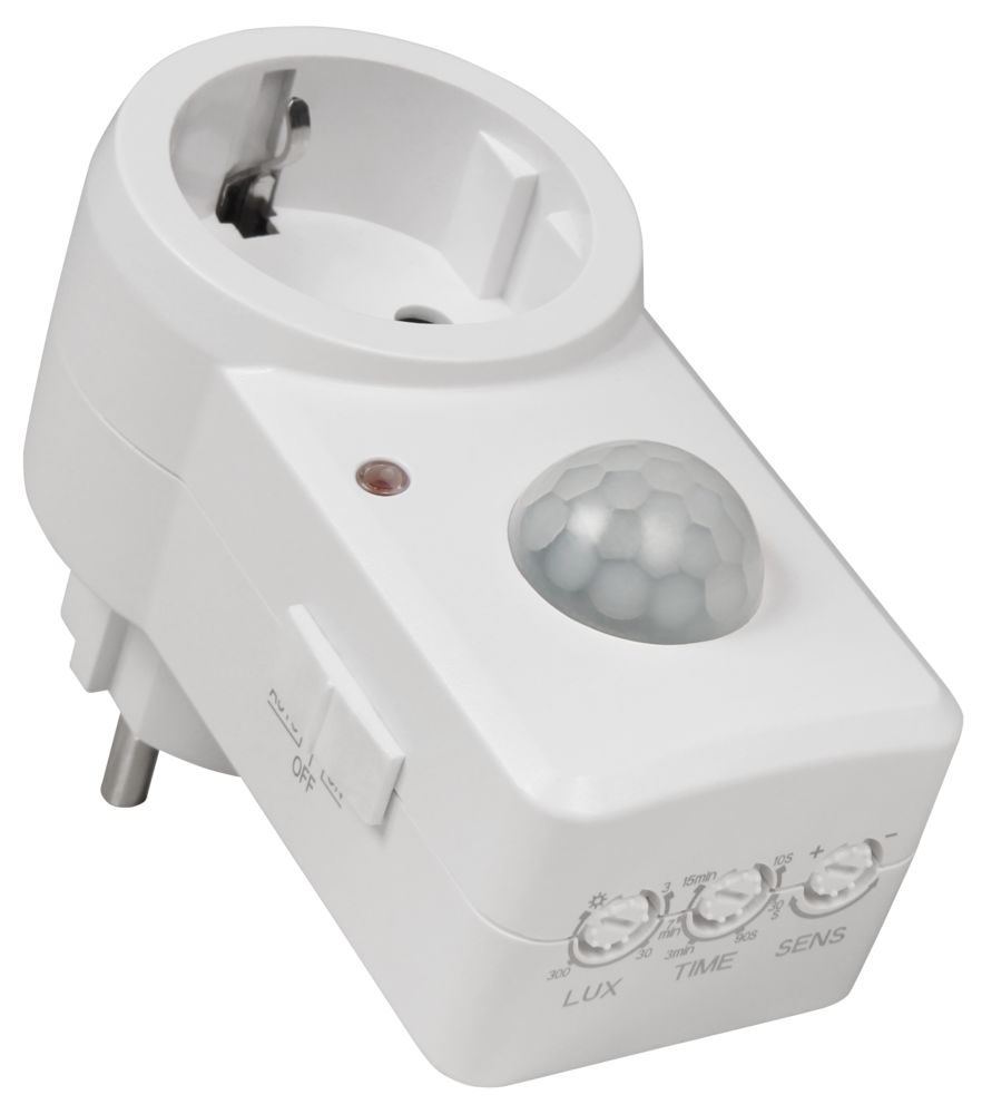 - Bewegungsmelder: AUTO/ON/OFF einstellbar, Maximallast: 1-1.200 Watt, max. 1.200 W (ohmsche Last), max. 800 W (Glühlampen), einstellbare Schaltdauer: 10 Sek. - 15 Min., Dämmerungs-Empfindlichkeit: 3-2.000 Lux, Erfassungswinkel: 120°, Reichweite: 2-9m, 220-240V/AC