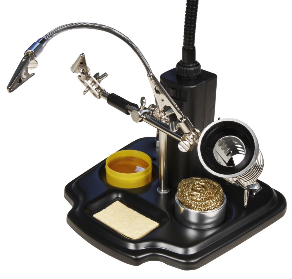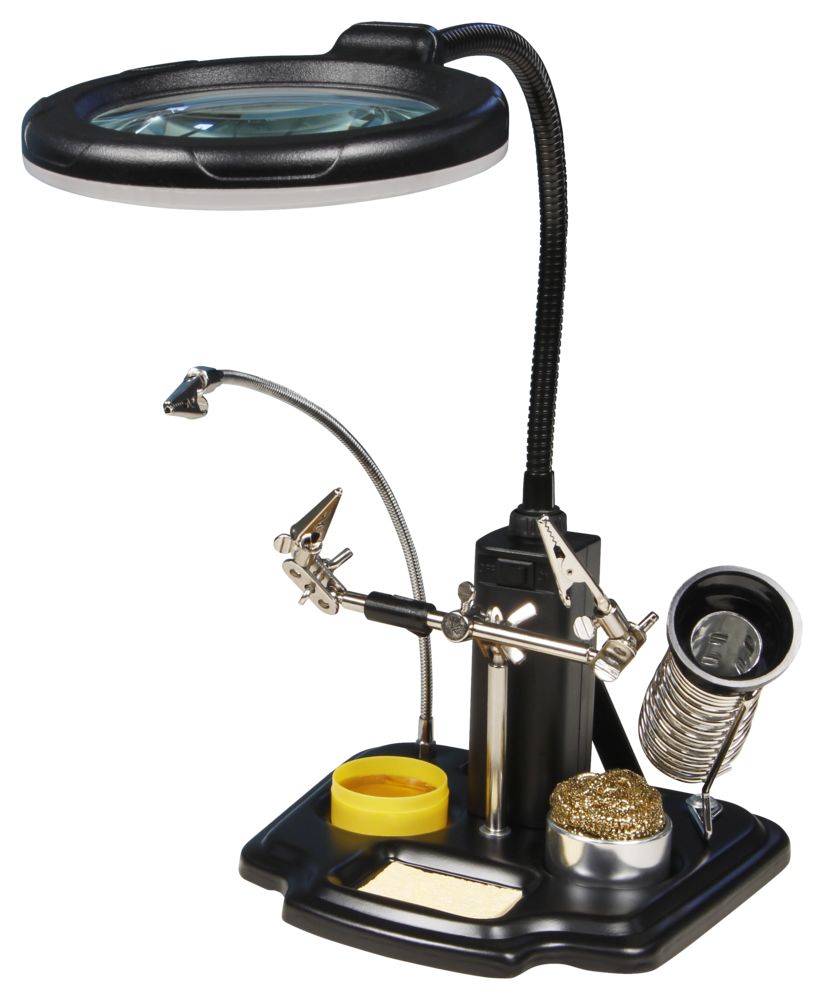 Der Artikel Dritte Hand mit LED-Lupe McPower, Lötkolben Halter, 3-fache Vergrößerung ist derzeit auf Lager