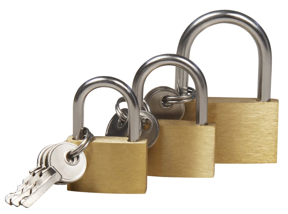 Schlösserset 3-teilig, 25 mm, 30 mm, 40 mm, mit je 3 Schlüsseln