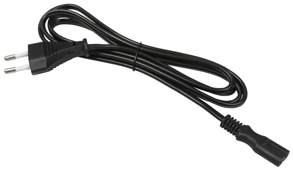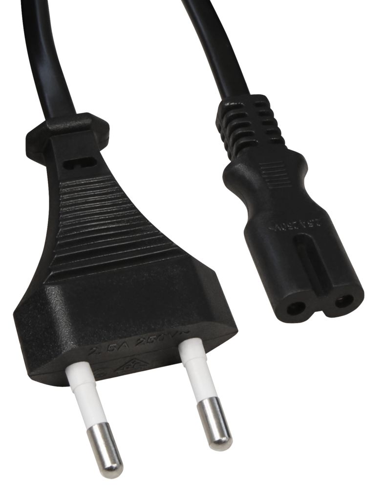 Der Artikel Euro-Netzkabel McPower mit Doppelnutstecker, 1,5m, 0,75mm², schwarz ist derzeit auf Lager