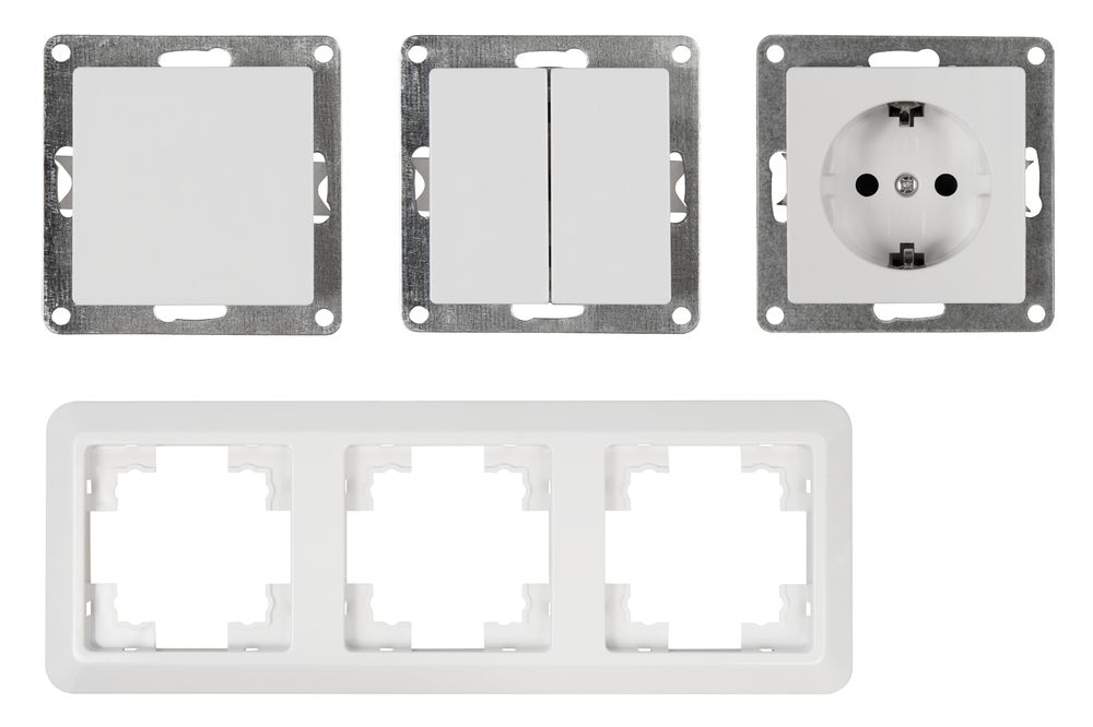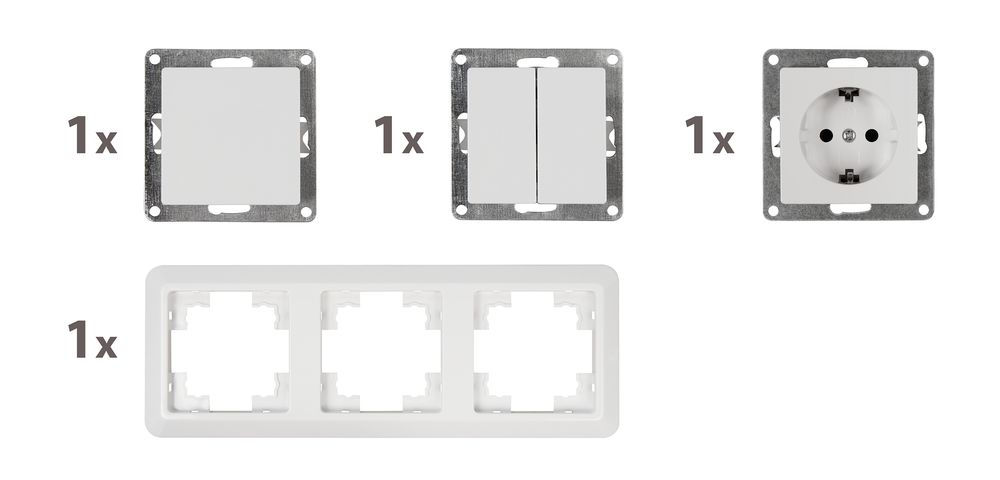 Schalter und Steckdosen Set McPower Cup ''Tür 3-fach'', weiß, 4-teilig