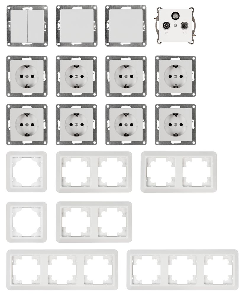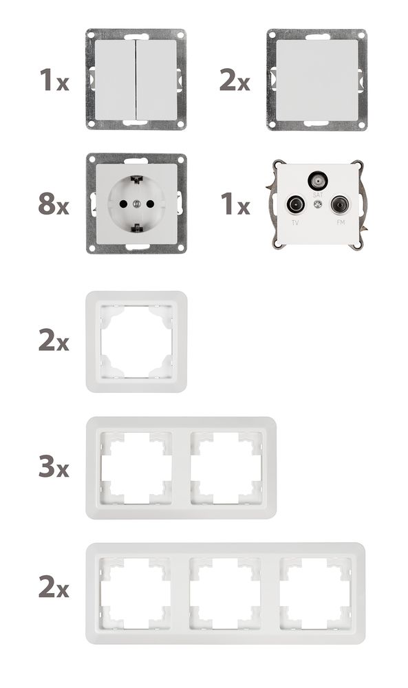 Schalter und Steckdosen Set McPower Cup ''Wohnlandschaft'', 19-teilig, weiß
