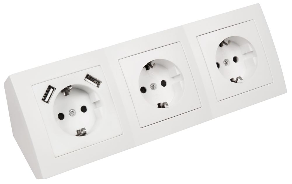 Steckdosenblock McPower ''Flair'' Aufbau, weiß, 3-fach Schutzkontakt + USB