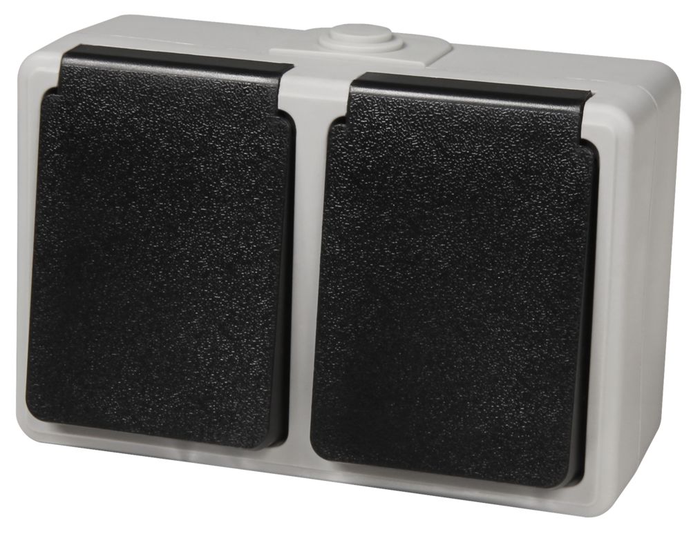 - spritzwassergeschützte Aufputz Doppel-Steckdose