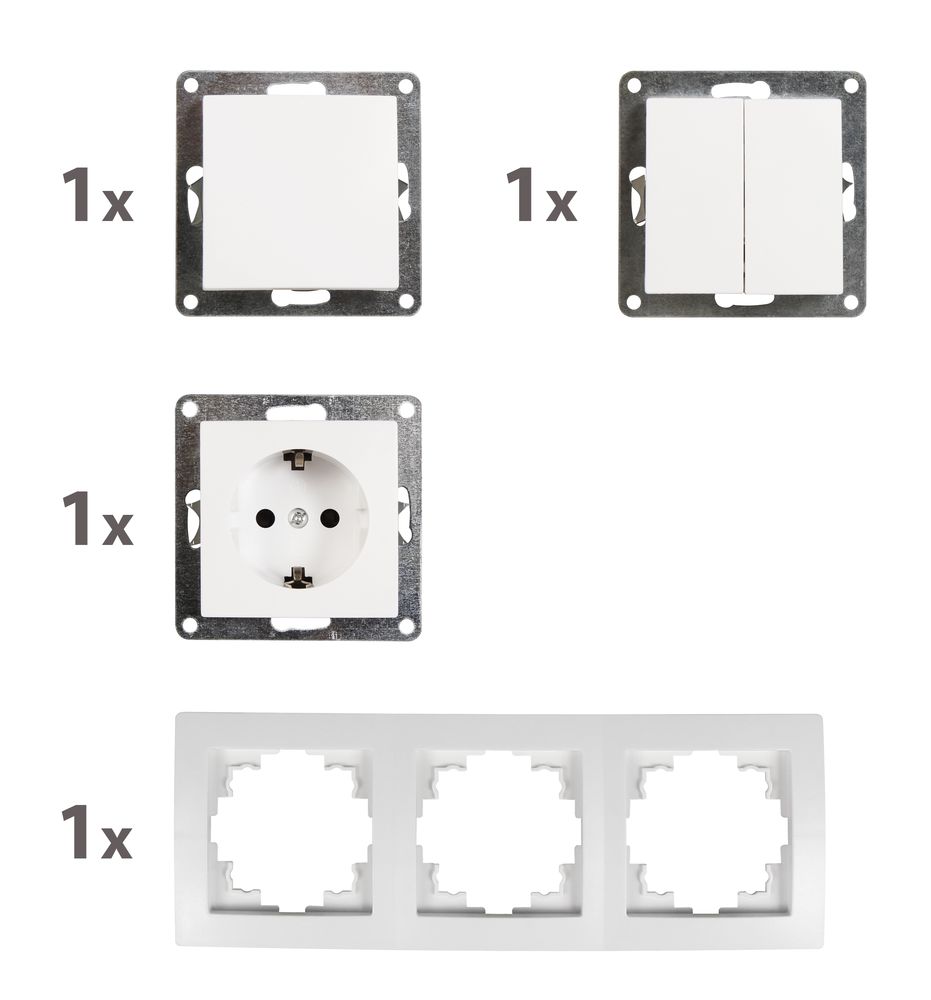 Schalter und Steckdosen Set McPower Flair ''Tür 3-fach'', weiß, 4-teilig
