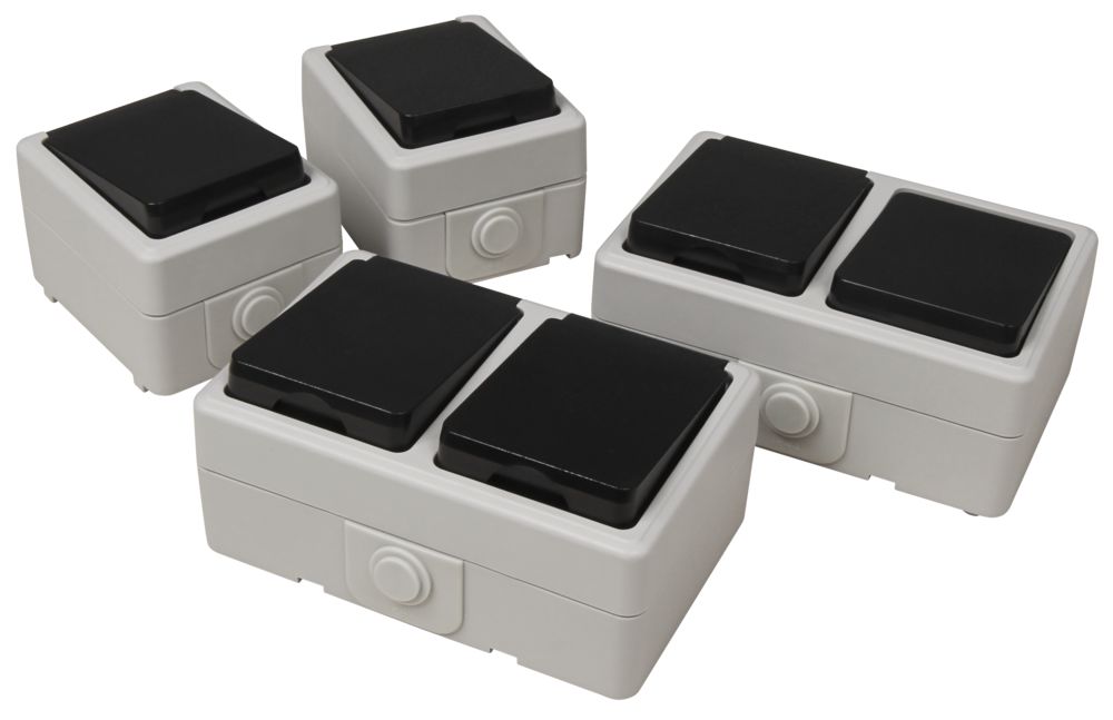- spritzwassergeschützte Aufputz Serie Taff bestehend aus: