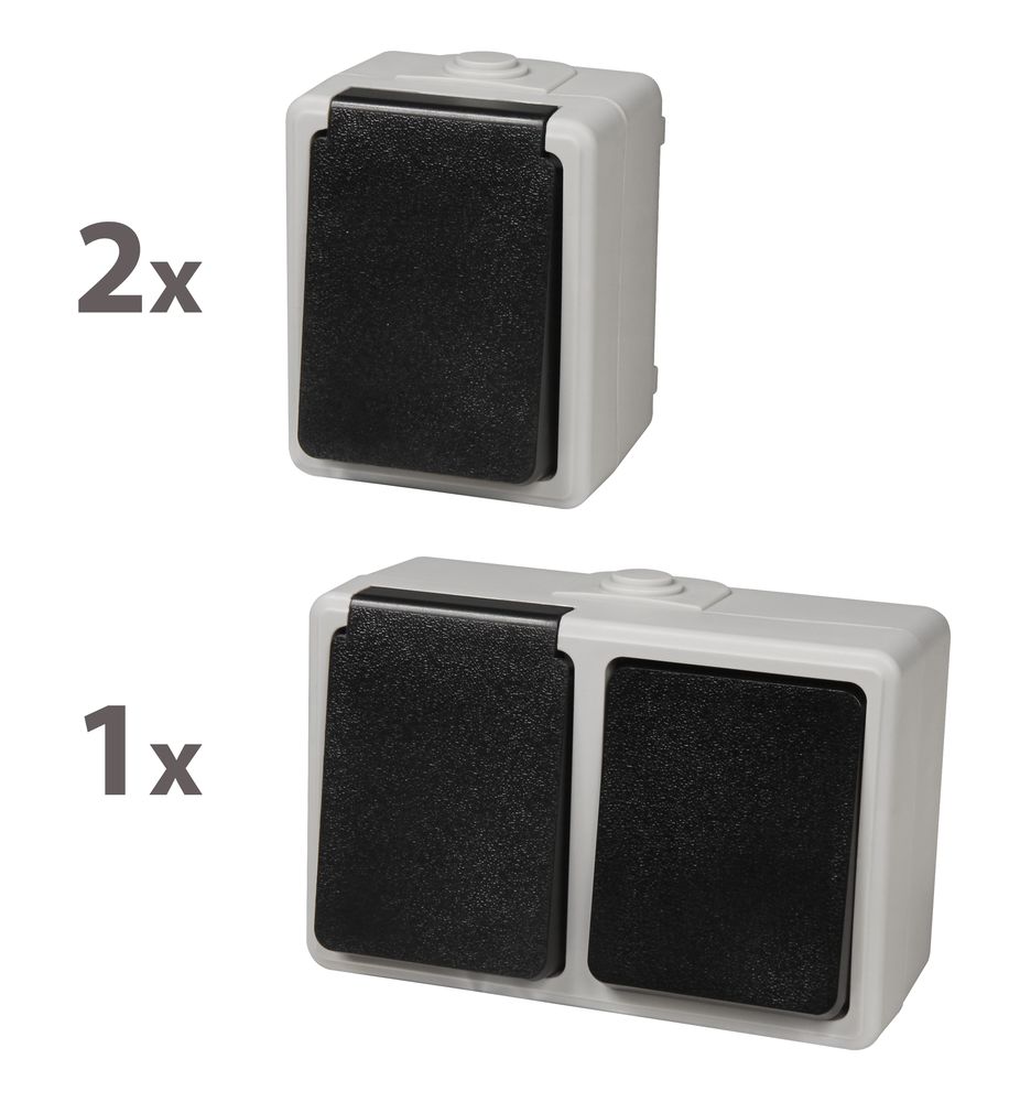 - Feuchtraum Steckdose McPower ''Taff'', 250V~/16A, IP44, AP, grau, 2 Stück