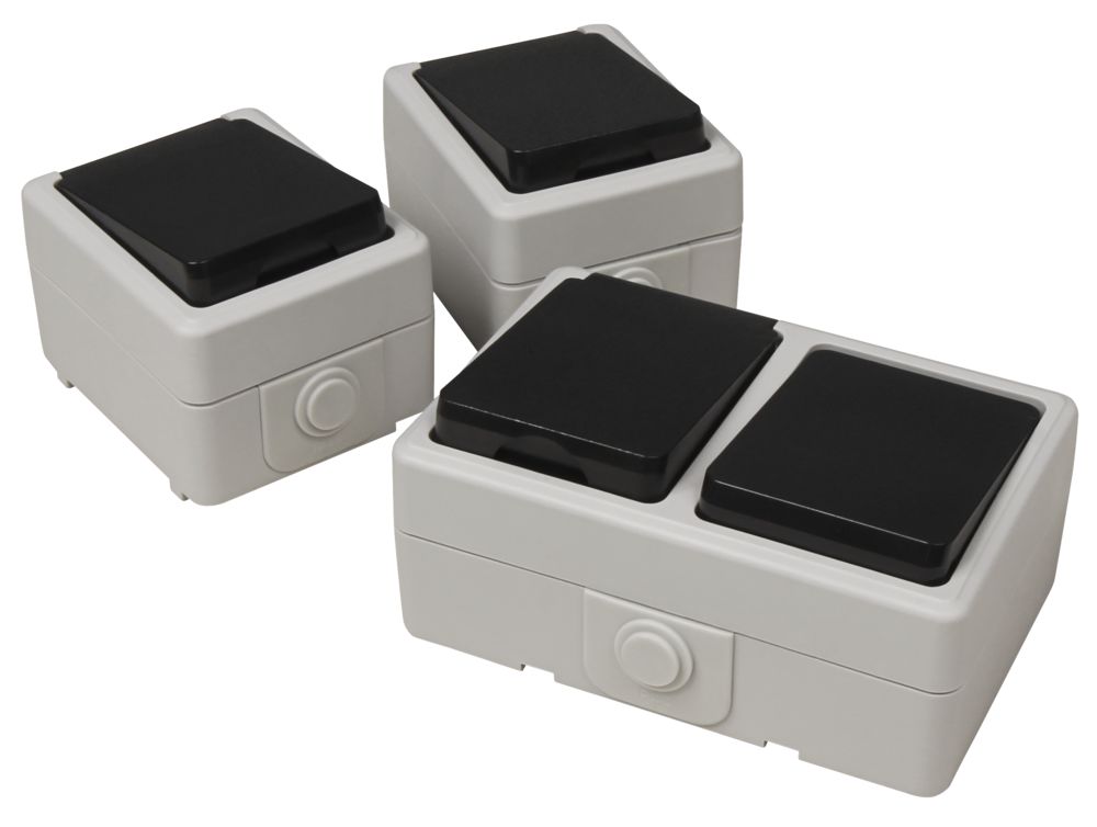 - spritzwassergeschützte Aufputz Serie Taff bestehend aus: