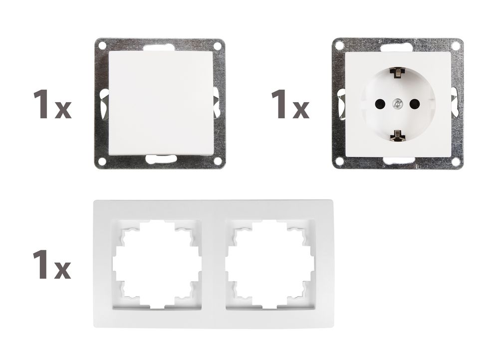 Schalter und Steckdosen Set McPower Flair ''Tür 2-fach Profi'', weiß, 3-teilig, Klemmanschluss
